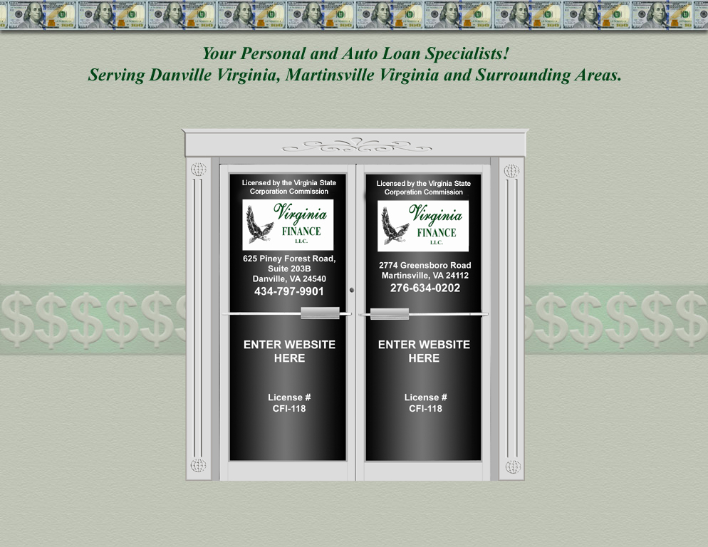 Virginia Finance, LLC in Danville, Va is your personal and auto loan specialists offering personal loans up to $4000-$5000 for your special needs and used car loans up to $12000. Please visit our website for more details.